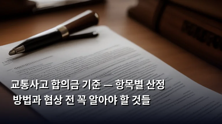 교통사고가 나면 가해자 측 보험사에서 빠르게 합의를 요청해 오는 경우가 많습니다. 이때 합의금이 적정한지 판단하지 못하고 서두르다가 나중에 후회하는 분들이 적지 않아요. 교통사고 합의금 기준은 어떻게 산정되고, 협상 전에 무엇을 알아야 하는지 항목별로 정리해 드릴게요.